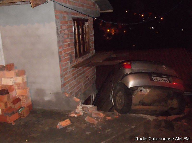 08/11/2014 A família do senhor Dorvalino Dutra Duarte que estava dormindo, teve um grande susto por volta da 1h da madrugada deste sábado (8). A residência deles localizada no entroncamento da rua Armando Sberb com a travessa Belém no bairro Vila Rica em Herval d´Oeste, foi invadida pelo automóvel pálio de cor prata com placas de Videira, que estava sendo conduzido por E.E.A.D. de 18 anos.
