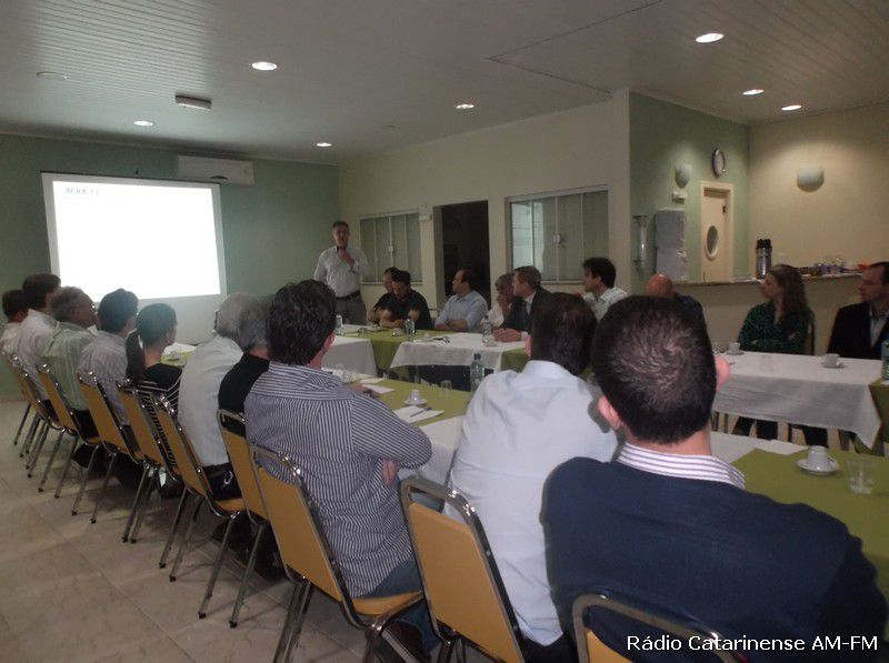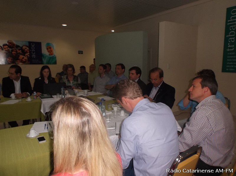 10/11/2014 Durante boa parte da manhã desta segunda-feira (10), lideranças empresariais, industriais e políticas estiveram participando de uma reunião organizada pela Associação Comercial e Industrial do Oeste Catarinense (Acioc) de Joaçaba. Como destaque do encontro a participação do deputado federal Jorginho Mello que depois de ouvir uma boa parte dos presentes, se posicionou quanto a cada uma das metas traçadas pela entidade e que fazem parte do documentado denominado Voz Única, que são, na esfera federal a ampliação do aeroporto Santa Terezinha, a duplicação da BR-282 e a Ferrovia da Integração – Leste/Oeste. Já na estadual o Contorno Viário, investimentos ao Hospital Universitário Santa Terezinha (HUST) e o Polo de Inovação Inovale.