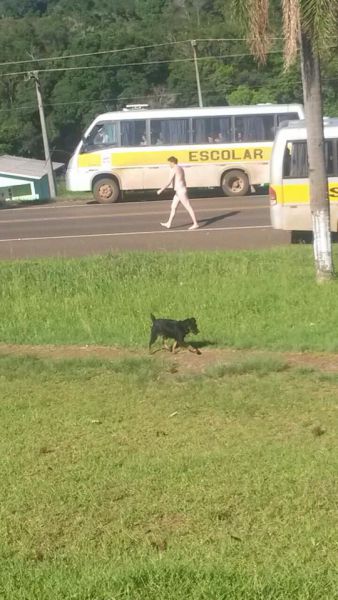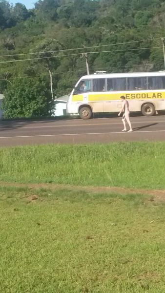 C.C. que é natural de Xanxerê e reside em Treze Tílias, depois de detido pelos policiais e conduzido até a delegacia, não soube dizer o porque teria tirado a roupa e nem como chegou até Vargem Bonita. Segundo informações, ele deverá ser enquadrado por danos materiais e atentado ao pudor, isso porque, depois de correr pelado pelo meio dos veículos e se jogar na frente dos carros, ele quebrou o para-brisa de um veículo.