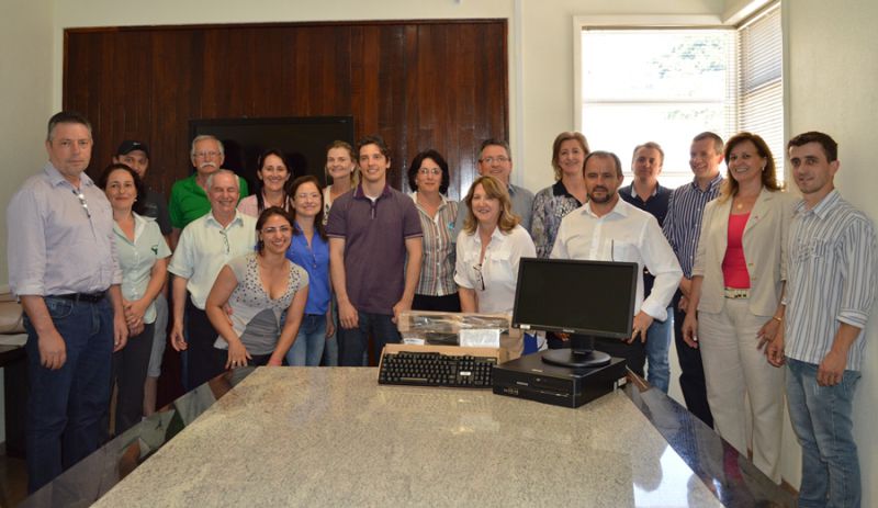 Prefeitos e secretários de Saúde participaram da entrega, realizada na SDR pela secretária Nelci Trento Bortolini. Os 51 computadores serão distribuídos entre as Unidades Básicas de Saúde dos municípios.