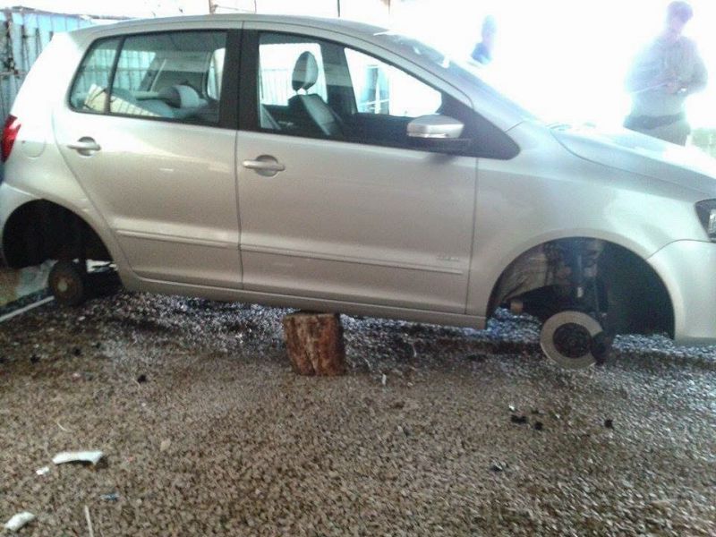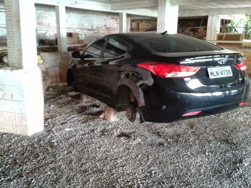 18/11/2014 Três veículos que estavam estacionados na garagem de um prédio tiveram as rodas furtadas entre a noite de sábado (15) e a manhã de domingo (16) em Campos Novos. O fato foi registrado pela Polícia Militar, por volta das 9h na Rua Marechal Deodoro, centro. De acordo com a PM, os ladrões invadiram a garagem e levaram quatro rodas de um veículo Hyundai Elantra e um Fiat Punto. Um Fox teve duas rodas furtadas. Os ladrões deixaram os carros apoiados sobre pedaços de madeira e fugiram. O caso está sendo investigado.