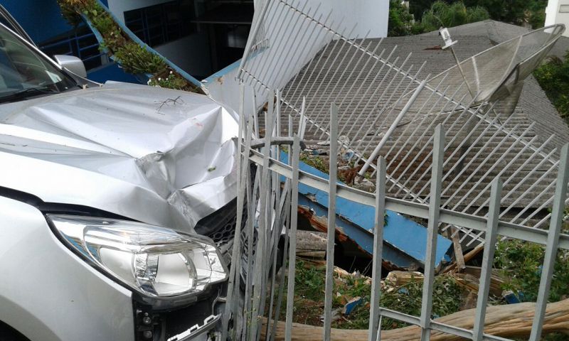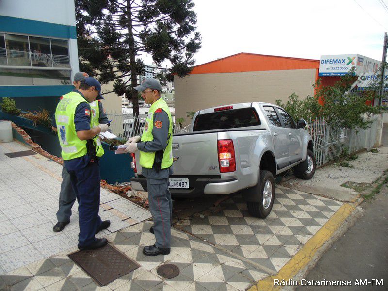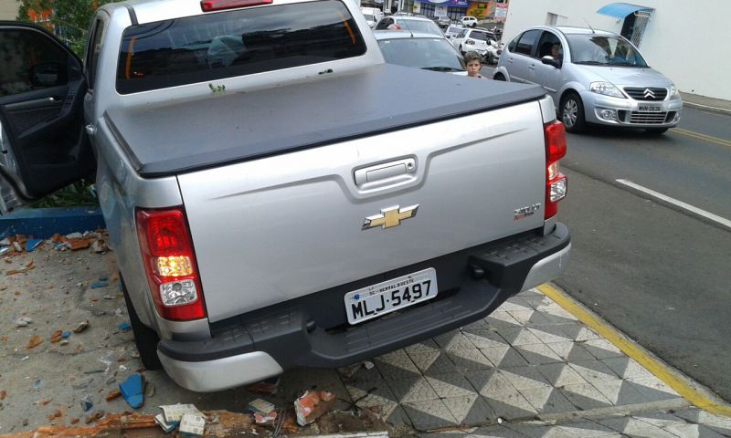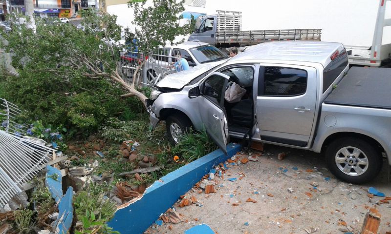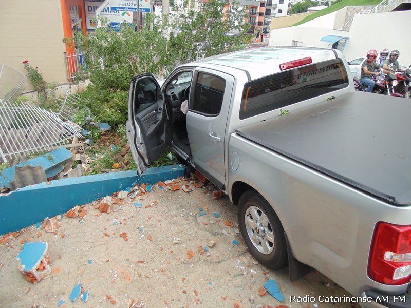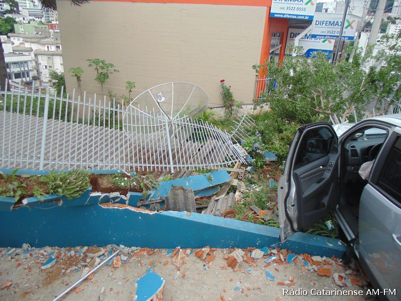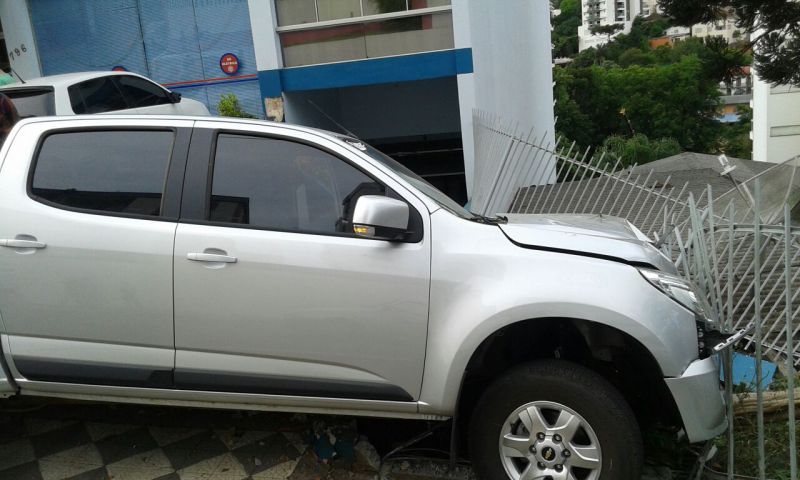 24/11/2014 O motorista de uma camionete GM/S10 levou um grande susto no final da tarde desta segunda-feira (24). O veículo, com placas de Herval d’Oeste, derrubou uma cerca com murro na empresa “Só Elétrica” na rua Duque de Caxias. O motorista relatou que perdeu o controle da camionete que descia pela rua Coronel Joaquim Torres, passou pela Duque de Caxias até parar na cerca. Por muito pouco o veículo não atingiu uma residência que fica no nível mais baixo da rua. Foram registrados apenas danos materiais.
