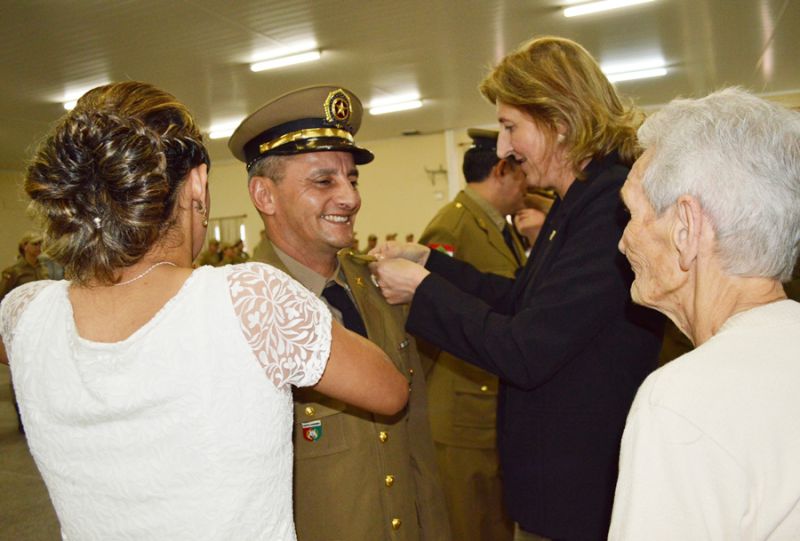 “Além da ascensão na carreira, representa a valorização profissional. É resultado do empenho e dedicação nos serviços prestados à sociedade”, destacou o comandante da 10ª RPM, coronel Turíbio Skonieczny. A secretária de Estado de Desenvolvimento Regional de Joaçaba, Nelci Trento Bortolini, também participou da solenidade.