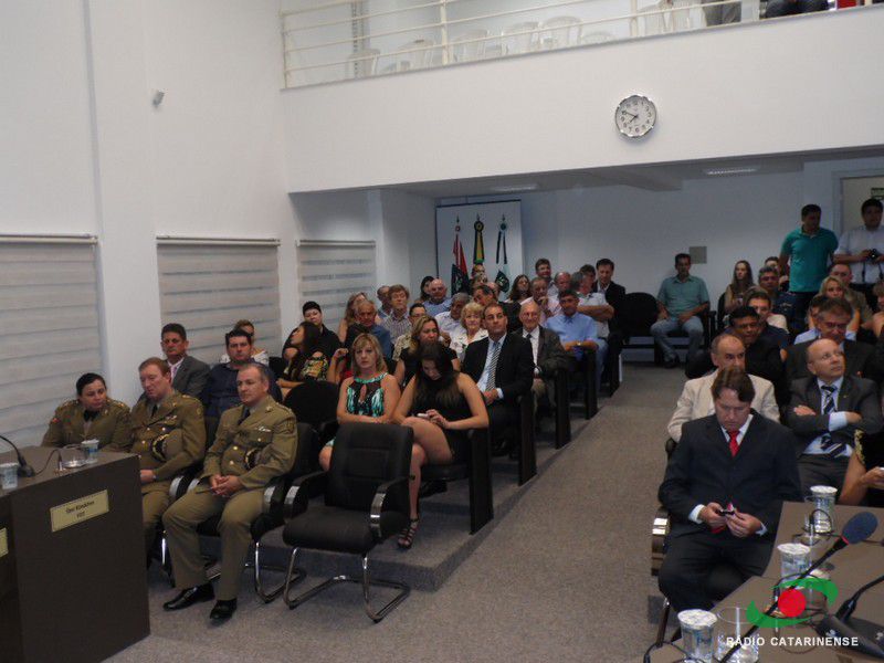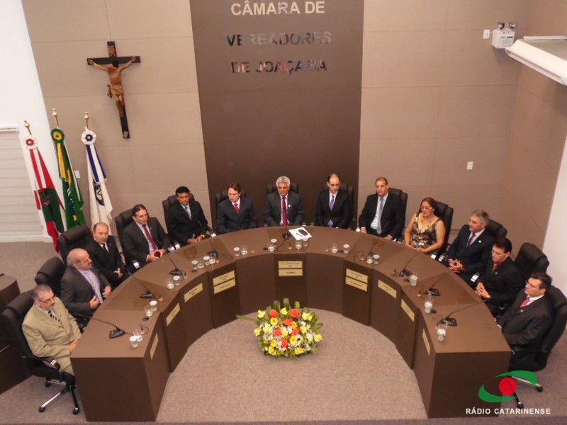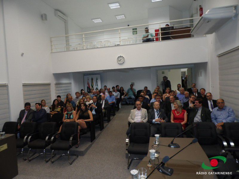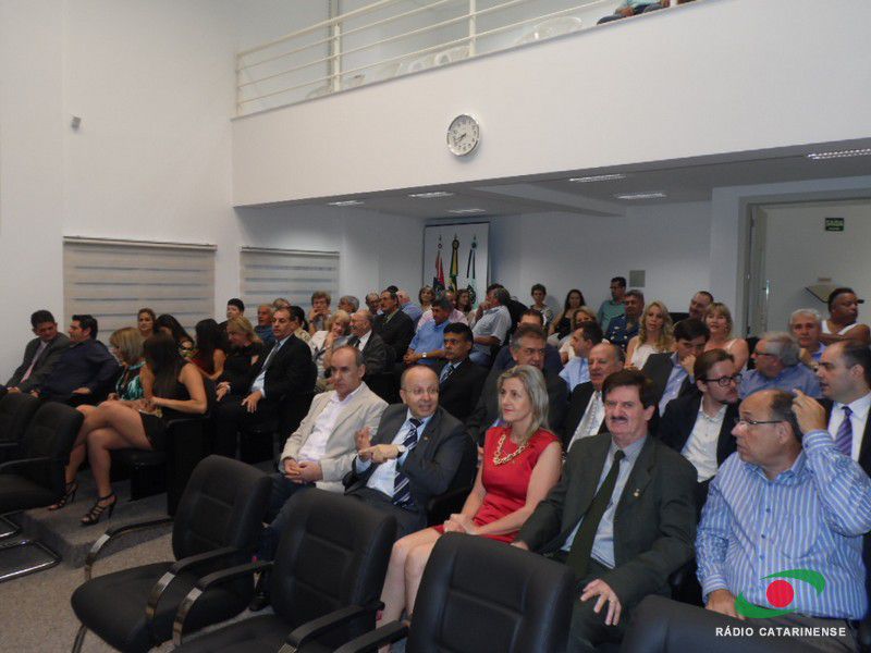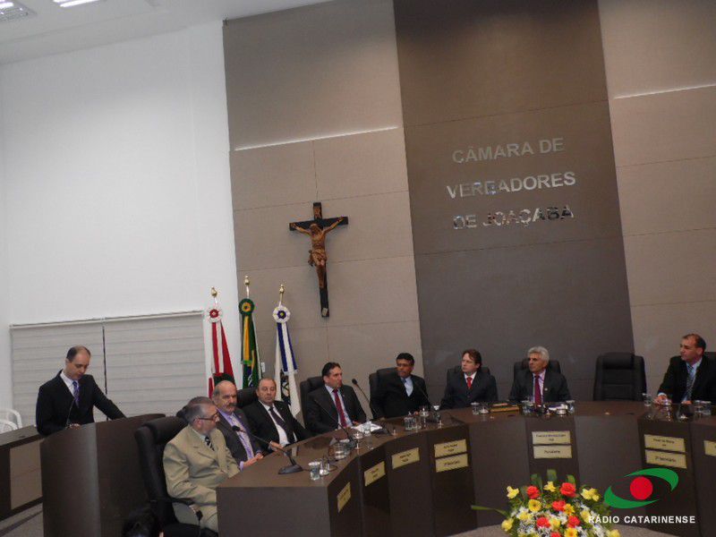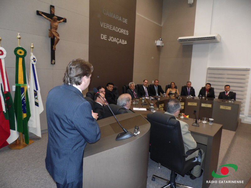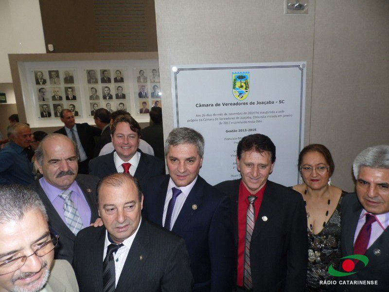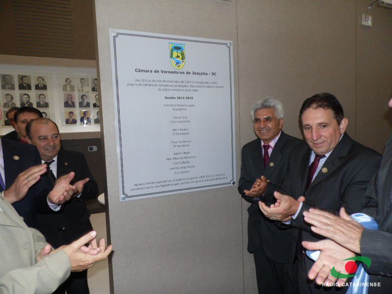 27/11/2014 A nova sede da Câmara de Vereadores de Joaçaba, localizada na rua Tiradentes na Vila Pedrini, foi inaugurada durante solenidade realizada na noite desta quarta-feira (26). O evento foi prestigiado por diversas autoridades, representantes de entidades, ex-vereadores e a imprensa. Após 67 anos de existência o Poder Legislativo passa a ter uma sede própria já que esta data ele funcionava em espaços cedidos pela prefeitura. O novo espaço permite que cada vereador tenha um gabinete apropriado para realizar seus trabalhos e atender a população, assim como os funcionários, que estão em melhores instalações, disse o presidente Francisco Moreira Lopes. O terreno, onde está a nova sede, foi adquirido em 2009 através de um projeto aprovado por unanimidade pelos vereadores. O prédio tem 1.284,69 m2 de área construída distribuídos em seis pavimentos, dois deles de garagem.