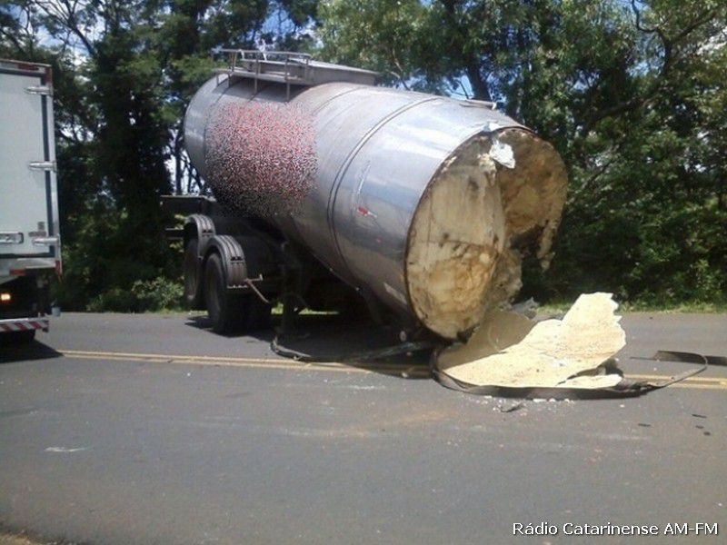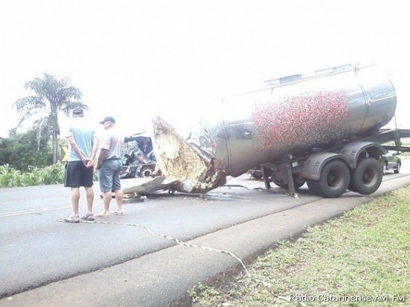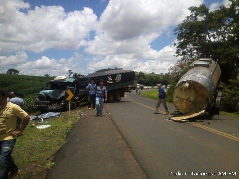 Informações dão conta que o caminhão de Treze Tílias que fazia o transporte de leite seguia sentido Flor da Serra do Sul, quando numa curva uma das partes se soltou e atingiu o caminhão Mercedes-Benz, que seguia no sentido contrário. O motorista do Paraná ficou preso nas ferragens, não resistiu aos ferimentos e morreu no local.