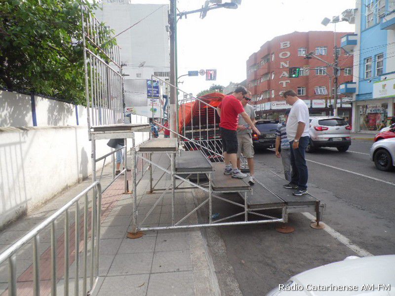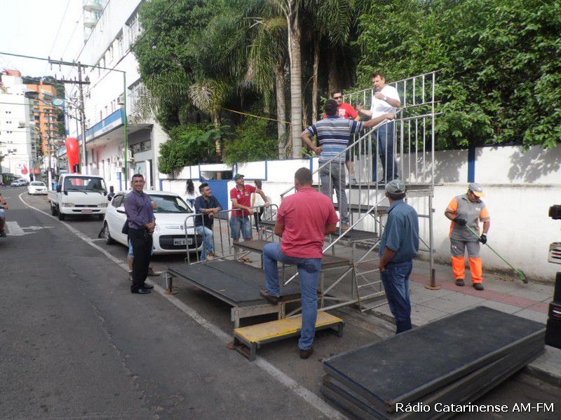 01/12/2014 Aconteceu nesta segunda-feira (1º) um teste para a instalação de um novo modelo de arquibancada que deverá ser usado no desfile das escolas de samba em 2015. Representantes da Liga Independente das Escolas de Samba de Joaçaba e Herval d´Oeste (Liesjho), do Corpo de Bombeiros e da empresa responsável pela arquibancada se reuniram na avenida XV de Novembro e fizeram a montagem de um lance desta nova arquibancada.