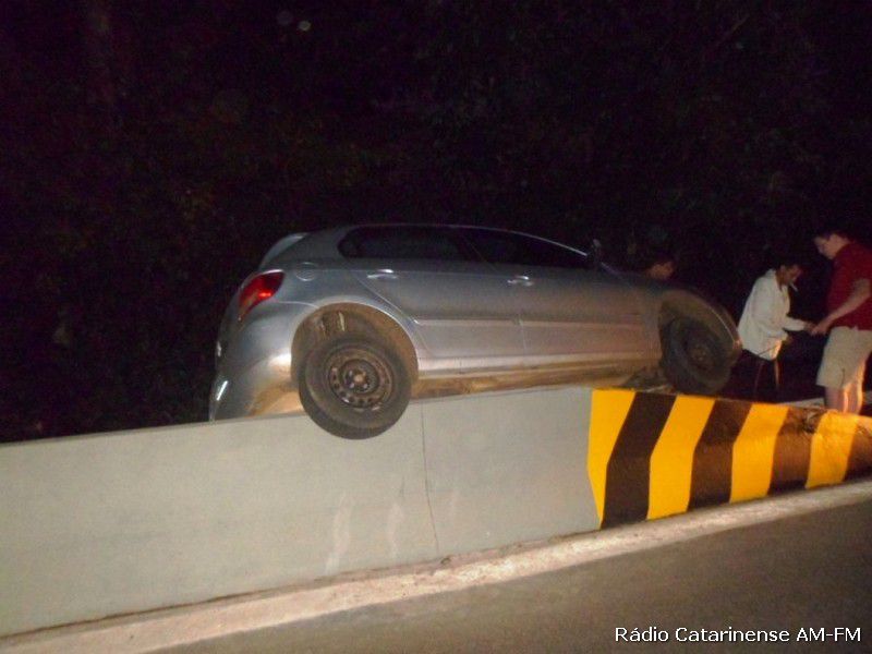 04/12/2014 Na madrugada desta quinta-feira (4), por estar bêbado, um motorista ao perder o controle da direção de seu veículo Gol com placas de Vargem Bonita no acesso Adolfo Ziguelli, ficou com o carro “encavalado” na mureta que divide a pista. A ocorrência foi registrada por volta das 2h e segundo o relatório dos policiais militares sargento Auri, sargento João e soldado Baldi, o motorista estava subindo o acesso com destino a BR-282, quando perdeu o controle do veículo, subindo a mureta, ficando pendurado.