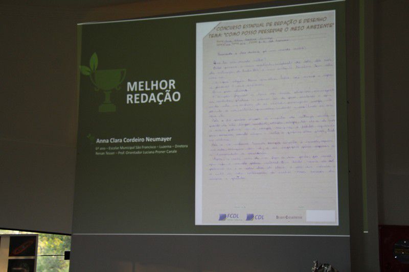 Os vencedores da etapa municipal foram Ana Clara Cordeiro Neumayer (6º ano da Escola São Francisco de Luzerna) em redação e Camilli Gabrielli Dias (4º ano da Escola Frida Regensburger de Joaçaba) na modalidade de desenho. As alunas foram agraciadas com dois prêmios, um da CDL e outro da FCDL.