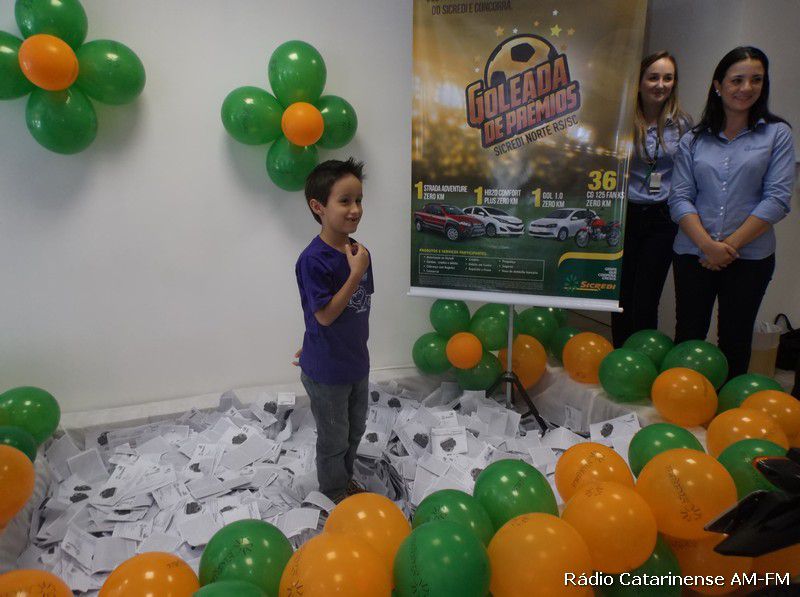 05/12/2014 Aconteceu na tarde desta sexta-feira (5), o sorteio de uma motocicleta Honda Fan CG-125 0km de cor vermelha por parte da agência do Sicredi em Joaçaba. Na presença de um grande número de convidados, funcionários e alguns clientes o garoto Matheus entrou na piscina com milhares de cupons e fez o sorteio de apenas um, cujo nome do ganhador é Juliano Luiz Turatto, que no momento do sorteio, era um dos clientes que estava dentro da agência. Todo o sorteio foi conduzido pelo gerente do Sicredi local, Roque Cazagranda.