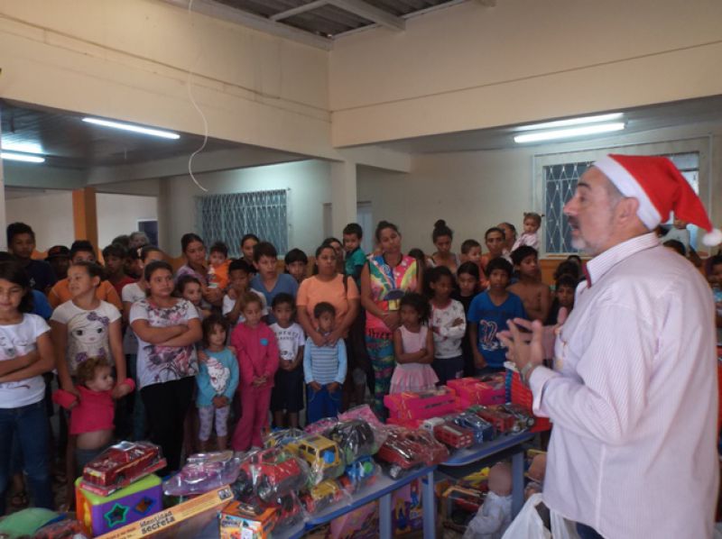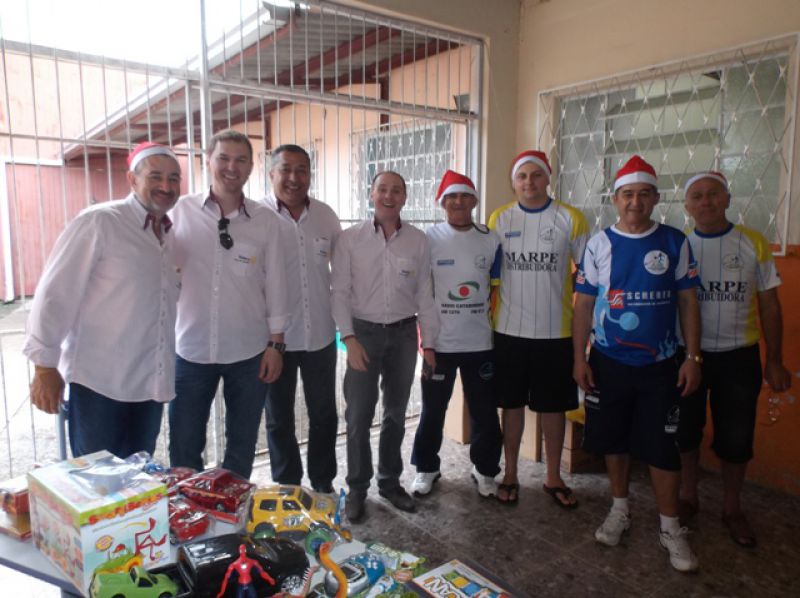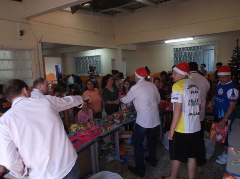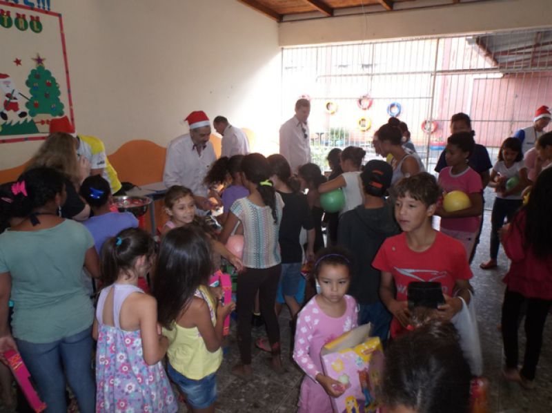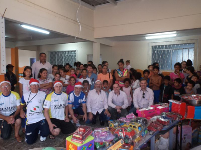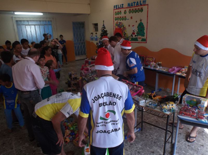 13/12/2014 Na manhã deste sábado (13) um grande número de crianças estiveram presentes nas dependências da Escola Básica Municipal no bairro Nossa Senhora de Lourdes em Joaçaba, para receber presentes e guloseimas conseguidas através de uma Ação Solidária promovida pelo Rotary Clube e a Associação Joaçabense de Bolão.