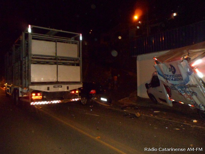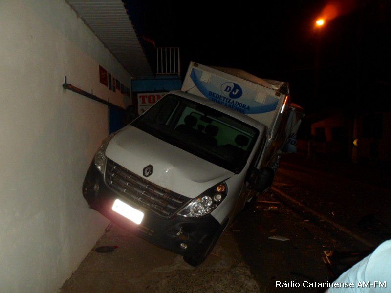 16/12/2014 Por volta das 3h30 da madrugada desta terça-feira (16), foi registrada uma ocorrência de saída de pista envolvendo um caminhão Mercedes-Benz com placas de Catanduvas que era conduzido pela senhora de iniciais E.G. de 33 anos. Na ocorrência que aconteceu na Avenida Caetano Natal Branco em Joaçaba, a condutora do caminhão ao sair da pista acabou colidindo em dois veículos que estavam estacionados, ou seja, uma camionete e um Golf com placas de Joaçaba, além de atingir a parede de uma oficina.