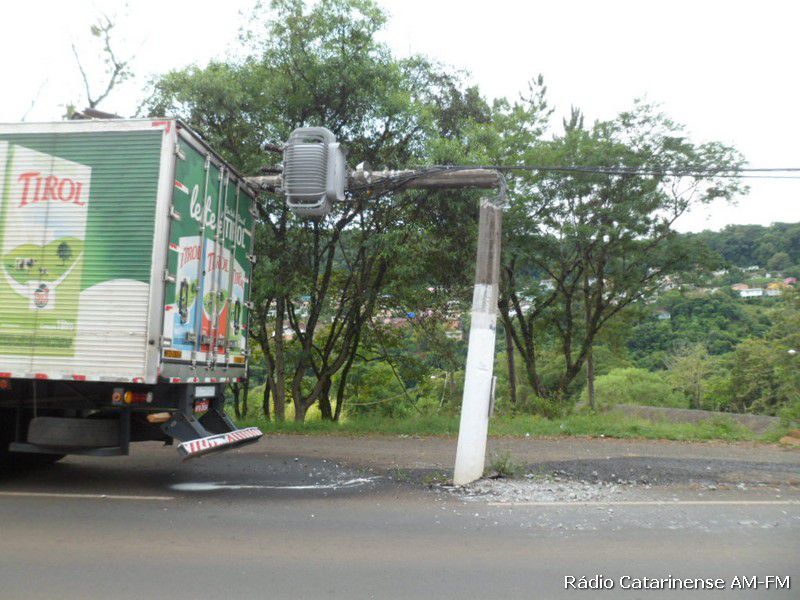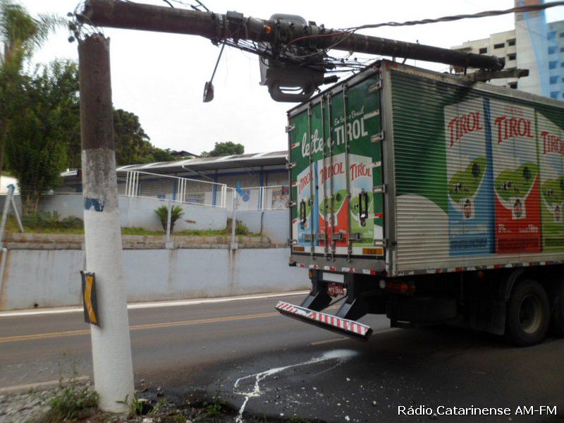 16/12/2014 Foi registrada por volta das 7h da manhã desta terça-feira (16), uma ocorrência na Avenida Caetano Natal Branco em Joaçaba envolvendo um caminhão carreta com placas de Lages, que ao fazer uma manobra em marcha ré atingiu um poste de energia elétrica. O veículo estava sendo conduzido por senhor de iniciais C.B. de 59 anos. O caminhão estava carregado com leite e após a sua retirada, foi autorizado a seguir viagem com destino ao município de Treze Tílias.