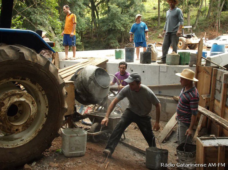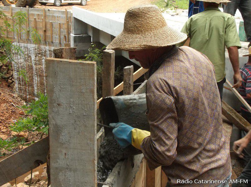 17/12/2014 Por volta das 14h desta quarta-feira (17), aproximadamente 15 moradores que residem na comunidade do Pato Roxo que pertence à Joaçaba e fica na divisa com o município de Lacerdópolis, colocaram literalmente a mão na massa, e resolveram fazer um serviço de contenção na cabeceira da ponte que liga os dois municípios. Segundo os agricultores isso está acontecendo porque eles reclamam a falta de apoio e o não cumprimento de um acordo firmado com a administração de Joaçaba.