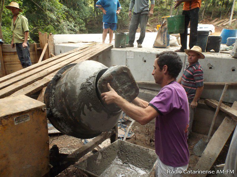 “O prefeito Hilário Quiamulera de Lacerdópolis cumpriu com a sua parte, inclusive fez mais que o combinado, por isso queremos aqui agradecer ele e sua equipe que construíram a contenção da cabeceira do lado de São Roque, deixando a caixaria pronta para receber o material da prefeitura de Joaçaba na cabeceira de Pato Roxo. Como isso não aconteceu até agora, nós moradores resolvemos comprar o material e fazer o serviço”, argumentou Salustiano Proner.