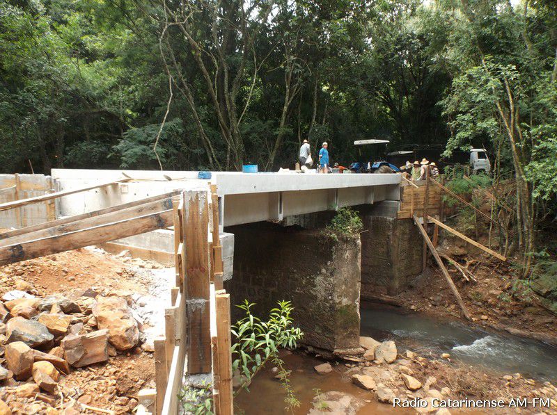 A recuperação desta ponte só está sendo possível, porque a administração de Lacerdópolis recebeu da Defesa Civil Estadual neste ano, as pranchas da ponte em pré-moldado com 11 metros de cumprimento. Num acordo verbal firmado entre as duas prefeituras, ficou acertado que uma Joaçaba entraria nesta parceria com o material, enquanto que Lacerdópolis ficaria com a responsabilidade da mão de obra.