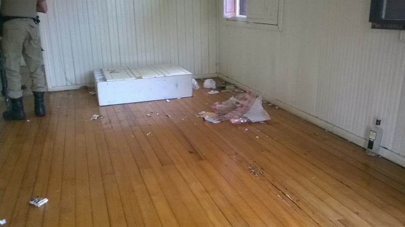 23/12/2014 Uma casa abandonada na rua 13 de Maio, no centro de Joaçaba, está servindo como local para consumo e até mesmo tráfico de drogas. Os moradores da rua já efetuaram algumas denúncias a Polícia Militar em razão da grande movimentação diária. Na tarde desta terça-feira (23) os policiais realizaram uma vistoria no imóvel e encontram quatro menores no interior da residência. Dois dos menores tinham passagens pela polícia, mas como não foi encontrado drogas ou objetos suspeitos eles acabaram sendo liberados. No interior da casa apenas peças de roupas abandonadas.