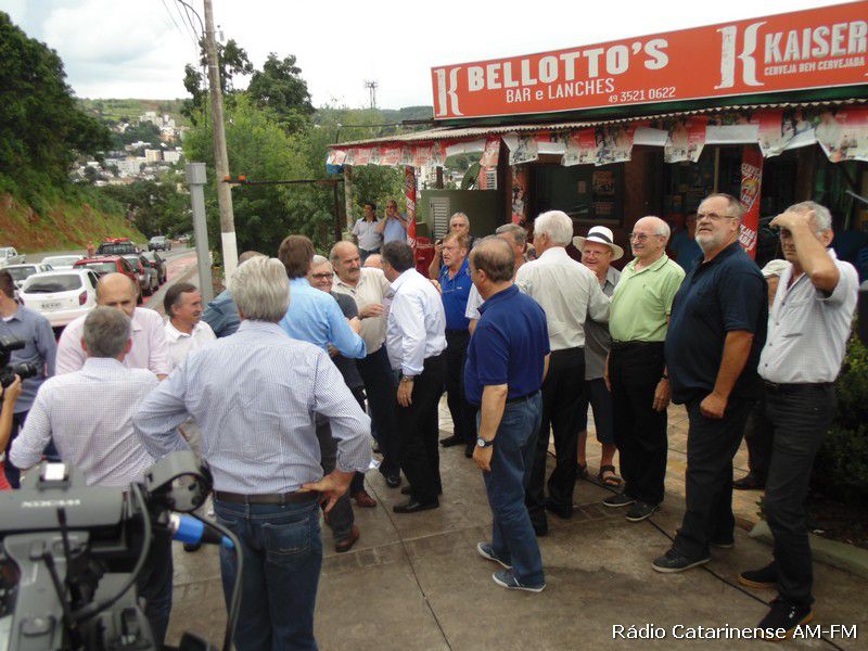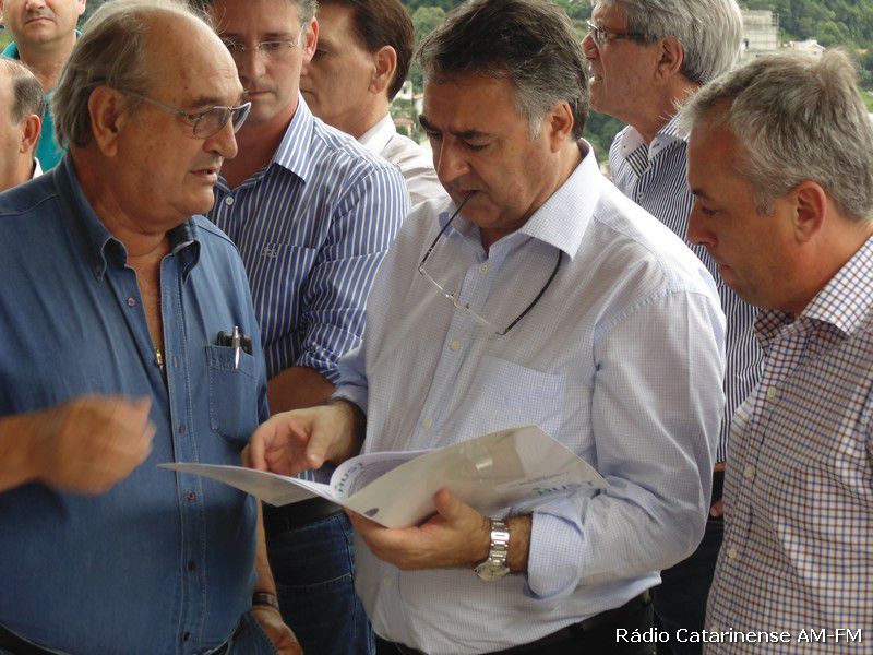 08/01/2015 Apesar do tempo não ter novamente colaborado, o governador do Estado, Raimundo Colombo e sua comitiva chegaram às 16h da tarde desta quinta-feira (8) para realizar a visita técnica nas obras do acesso Adolfo Ziguelli, haja vista o investimento por parte do governo catarinense em aproximadamente R$ 10 milhões. Fizeram parte da comitiva do governador o deputado federal Jorginho Mello e os secretários da Agricultura, Moacir Sopelsa e da Saúde, João Paulo Kleinubing que foram recepcionados pelos prefeitos da região e vereadores, além de outros convidados.
