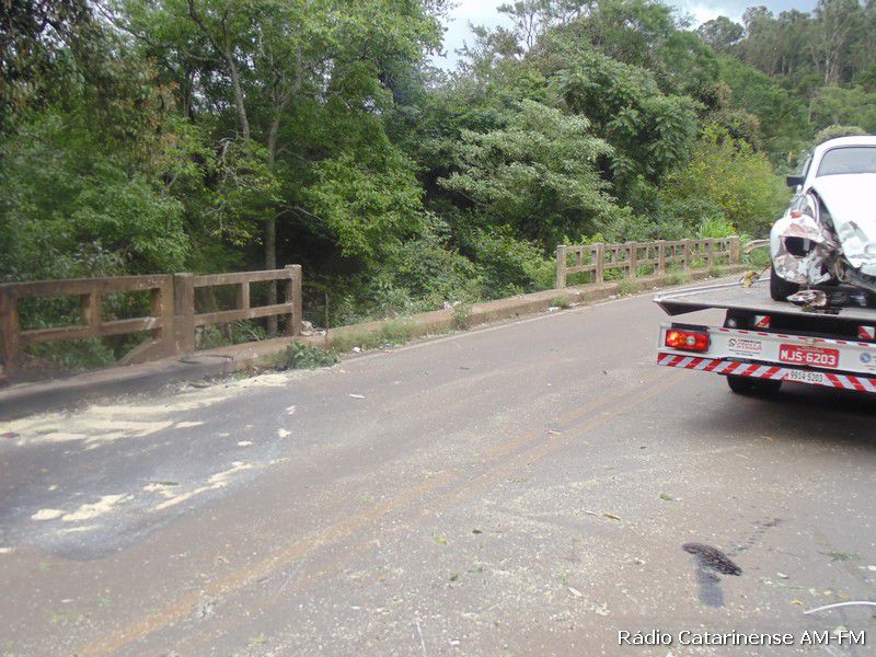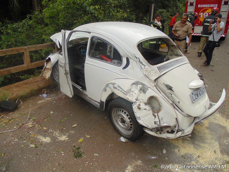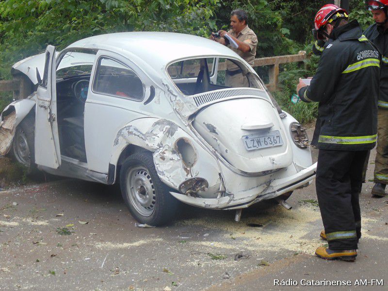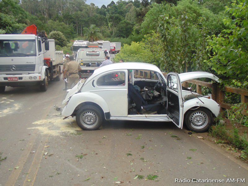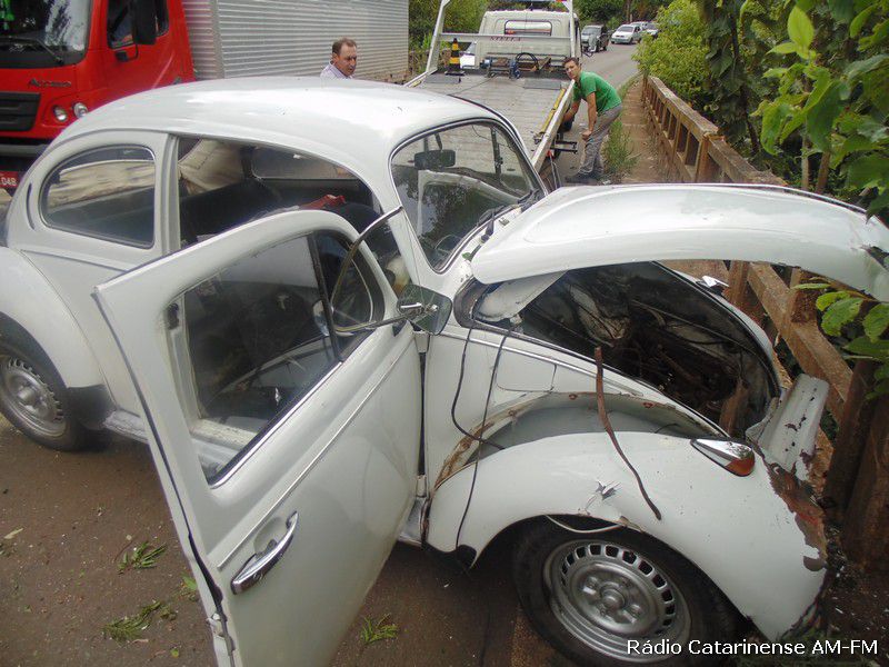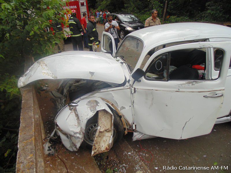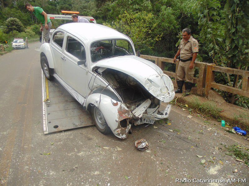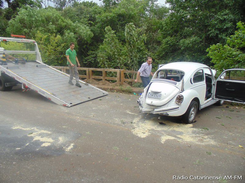 Depois da pancada o motorista de iniciais A.C.S teve um grande susto, porque o veículo pegou fogo na parte dianteira e quase foi parar dentro do rio. Populares que passavam pelo local ajudaram o Corpo de Bombeiros a apagar o fogo no Fusca, porque o motorista que apresentava ferimentos na cabeça, além de uma suspeita de fratura no braço direito, estava dentro do automóvel e depois de ser retirado, foi conduzido para o Hospital Universitário Santa Terezinha (HUST) em Joaçaba, onde recebeu os atendimentos médicos.