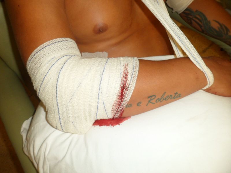 20/01/2015 A Polícia Militar (PM) atendeu uma ocorrência por volta das 22h30 desta segunda-feira (19) na rua Euclides Tortato no bairro São Jorge em Herval d´Oeste. Segundo informações, o jovem de iniciais C.I.M. de 20 anos estava em sua residência com a esposa e uma criança quando dos fundos do terreno da casa apareceu um homem trajando roupa escura, usando óculos escuro e uma touca ninja e sem falar nada, disparou 6 tiros contra C.I.M., sendo que um dos disparos atingiu de raspão o seu peito e o outro tiro se acertou o braço direito, vindo a bala a se alojar na altura do cotovelo.