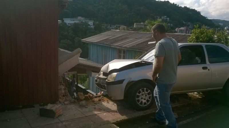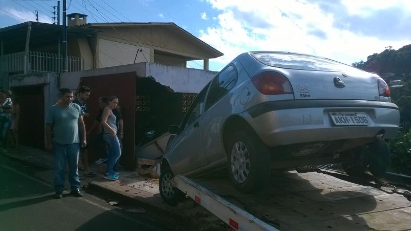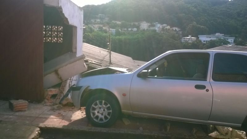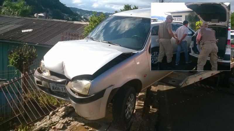 31/01/2015 Um motorista de 58 anos foi preso na tarde deste sábado (31) após se envolver num acidente na rua Santos Dumond em Herval d’Oeste. O homem que tem 58 anos conduzia um Ford/Fiesta com placas de Catanduvas que atingiu um muro de uma residência próximo da empresa Unesul. Por muito pouco o veículo não caiu em cima de uma casa que fica no patamar mais baixo da rua. A Polícia Militar que foi acionada para atender o acidente aplicou o teste do bafômetro que acusou que o motorista estava com teor de álcool no sangue acima do permitido por lei. Ele foi preso em flagrante e conduzido a delegacia de polícia. O motorista alegou que faltou freio no veículo. Ele pagou fiança no valor de 3 salários mínimos (2.364,00) e foi liberado em seguida. Ninguém ficou ferido. No veículo estava apenas o motorista.