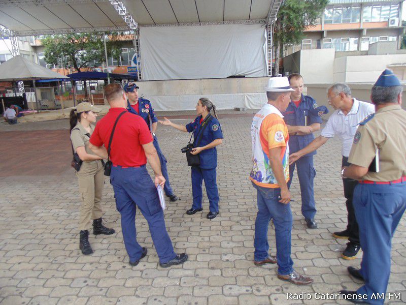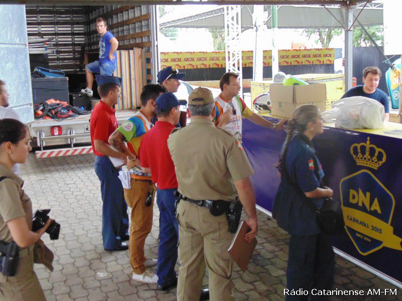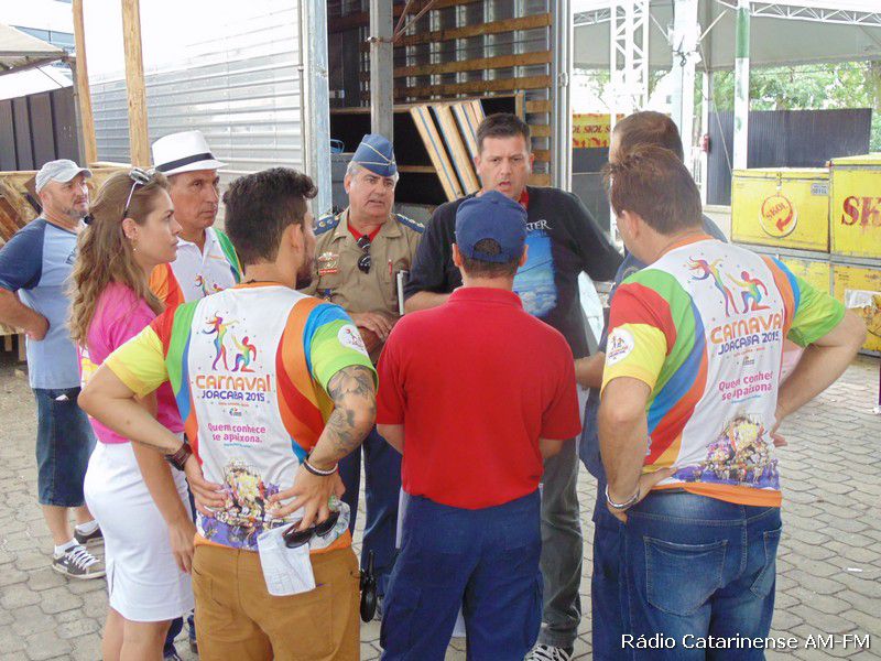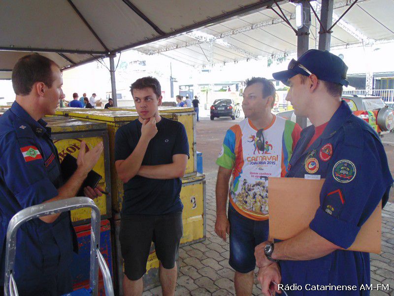 12/02/2015 Durante algumas horas da tarde desta quinta-feira (12), representantes do Corpo de Bombeiros, da Polícia Militar e do Conselho Regional de Engenharia e Arquitetura (CREA) de Joaçaba, estiveram juntamente com alguns membros da Liga Independente das Escolas de Samba de Joaçaba e Herval d´Oeste (Liesjho), realizando a primeira vistoria nos camarotes e arquibancadas instalados em boa parte da avenida XV de Novembro e também na arena onde acontecerá a partir desta sexta-feira (13) o carnablocos.