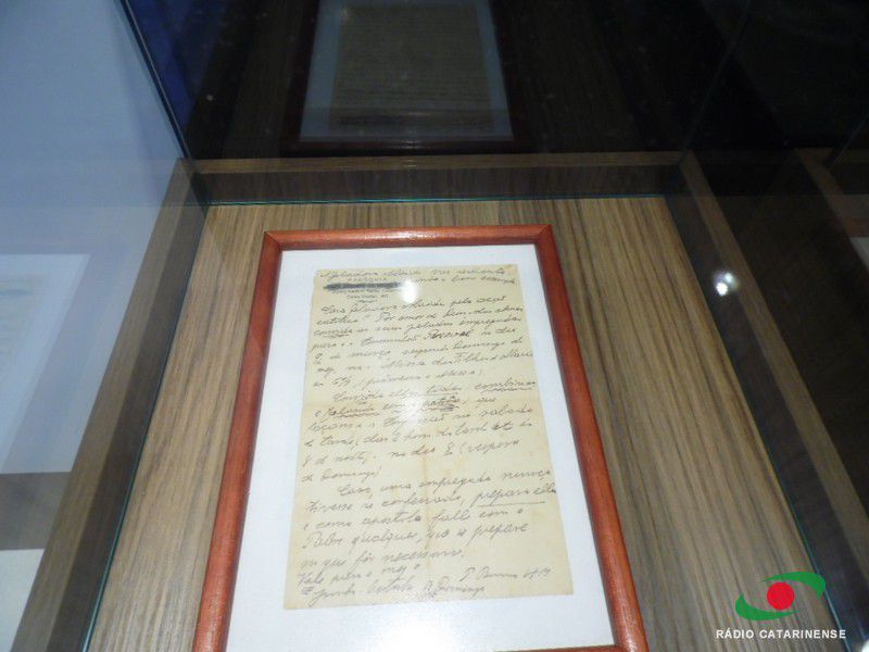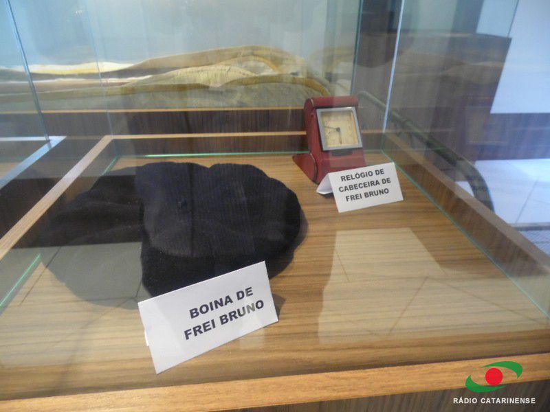 20/02/2015 A equipe de reportagem da Rádio Catarinense visitou na manhã desta sexta-feira (20) as novas instalações do Museu de Frei Bruno. Localizado numa sala apropriada, no Pavilhão Frei Bruno, o Museu retrata a figura do religioso que todos os anos reúne milhares de pessoas em Joaçaba. No Museu estão alguns objetos pessoais de Frei Bruno como a boina preta que ele usava, a cama simples onde dormia, um relógio que ganhou de presente, o manto que cobriu seu rosto durante o velório, manuscritos, fotos, uma bengala e outros objetos. “Mediante esses objetos a intenção é fazer com que a gente, as pessoas cresçam com a simplicidade que era marca de Frei Bruno que fez voto de pobreza” explicou o padre Paulo Ramos da Silva.