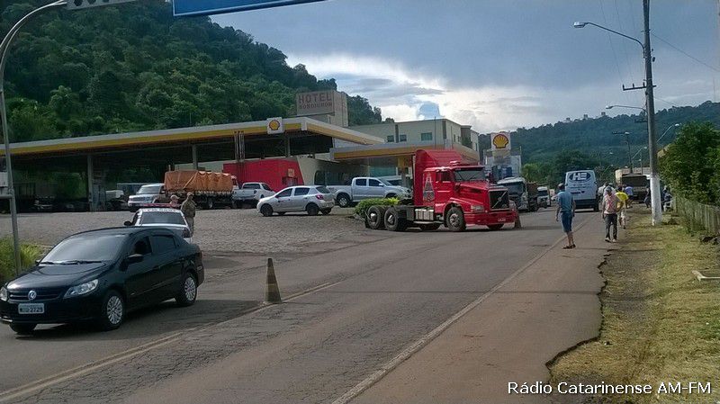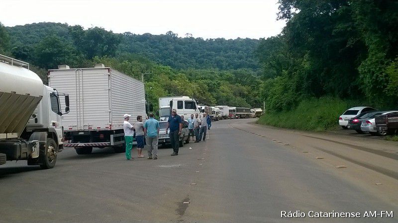 24/02/2015 Como uma forma de incentivo a classe, caminhoneiros de Joaçaba montaram durante a tarde desta terça-feira (24), dois pontos de paralisação, um defronte ao posto Amigão que liga a BR-282 e o segundo nas proximidades da Recauchutadora Roda, no sentido Lacerdópolis.