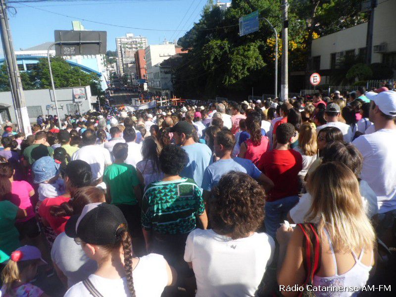 Estimativas extraoficiais dão conta de que aproximadamente 50 mil romeiros participaram de um dos eventos de fé mais prestigiado de Santa Catarina que neste ano comemorou a sua vigéssima quinta edição. Durante o trajeto da catedral Santa Terezinha até as dependências do cemitério Frei Edgar, muitas orações e cantos, além de pedidos e agradecimentos por graças alcançadas durante o ano que passou. Alguns inclusive fizeram o percurso descalços num sol muito forte.