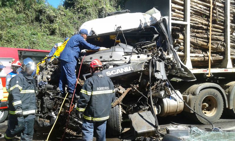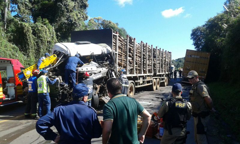 O acidente envolveu dois caminhões que colidiram por volta das 10hs em razão de uma ultrapassagem indevida de um Bitrem carregado de madeira. O bitren descia pela BR-282 e um outro caminhão que subia foi surpreendido com o Bitren na terceira pista. Para evitar a colisão frontal o motorista tentou desviar jogando o caminhão para o acostamento, mas a colisão lateral foi inevitável. O Bitrem tem placas de Catanduvas. O motorista Daniel Machado de 47 anos ficou preso nas ferragens e foi resgatado pelo Corpo de Bombeiros e levado ao HUST. Apesar dos vários ferimentos ele estava consciente.