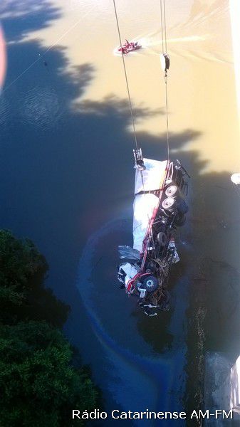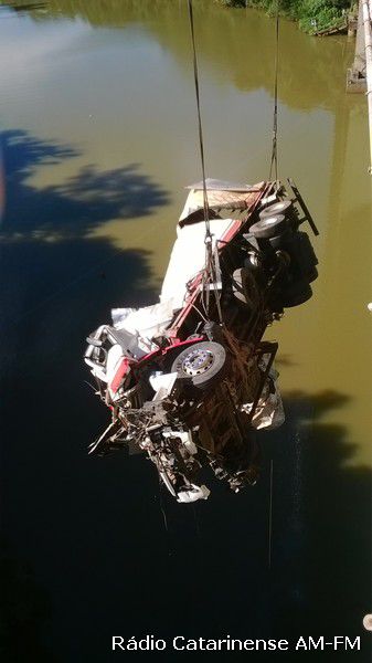 19/03/2015 Foi concluído com sucesso o trabalho que demorou 6 horas para a retirada do caminhão que desde a madrugada da quarta-feira estava submerso nas águas do Rio do Peixe, depois de se envolver num trágico acidente que vitimou 4 pessoas. Os corpos foram retirados no mesmo dia do rio pelo Corpo de Bombeiros, já o caminhão precisou de um tempo maior, isso porque uma empresa especializada teria que ser contratada, o que acabou acontecendo. Nesta quinta-feira (19), dois guindastes realizaram o serviço de retirada do veículo.
