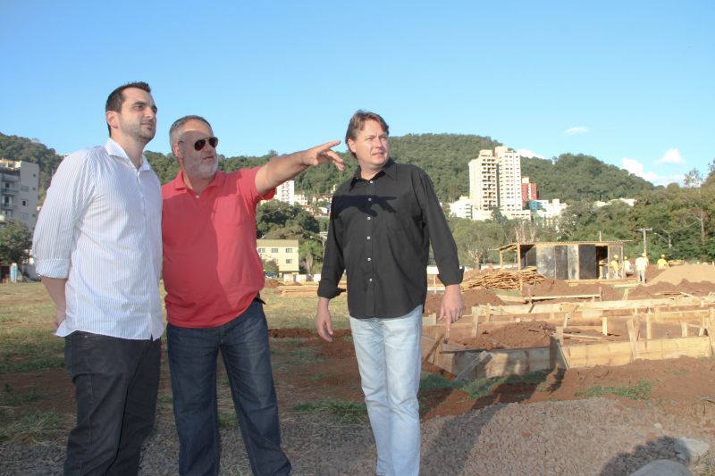 26/03/2015 O Prefeito de Joaçaba, Rafael Laske, acompanhado do gestor da obra do Parque Central de Joaçaba, o secretário de administração Celso Felipe Bordin e do secretário de infraestrutura Venilton Telles, esteve acompanhando o inicio dos trabalhos na obra de construção do Parque Central de Joaçaba. Orçado em mais de 2 milhões de reais, com recursos próprios, o projeto começou a sair do papel, cerca duas semanas depois da assinatura e entrega da ordem de serviços. “Como o recurso está na conta e garantindo, isso dá segurança a empreiteira a realizar de forma mais rápida os trabalhos. Estou gostando do que vi e tenho certeza que brevemente poderemos contar com um espaço único de lazer e prática desportiva em nossa cidade” destacou o Prefeito.
