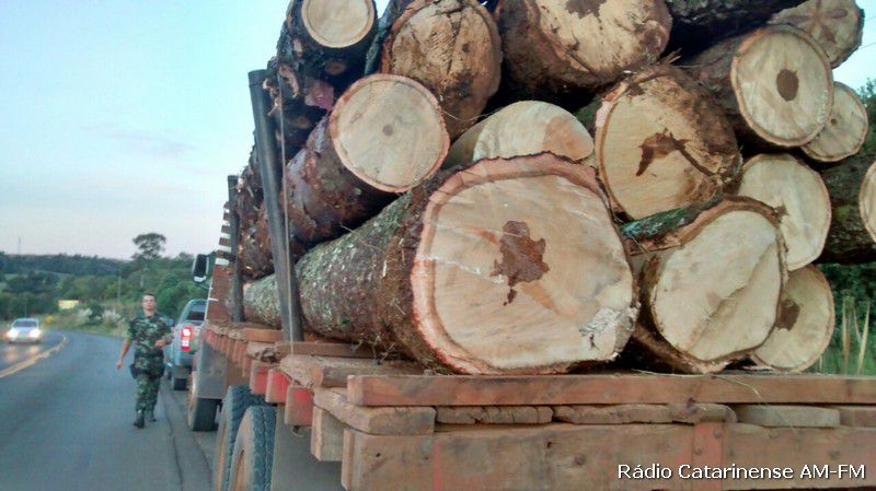 26/03/2015 Por volta das 18h30 desta quarta-feira (25), a Polícia Militar Ambiental com sede em Herval d´Oeste, flagrou transitando nas proximidades do município de Jaborá um caminhão com placas de Pinhalzinho e que transportava aproximadamente 18 toras de madeira, sendo a grande maioria araucária. Segundo o tenente Tatiano Cabral, o motorista não possuía o Documento de Origem Florestal (DOF) que é emitido pelo Ibama.