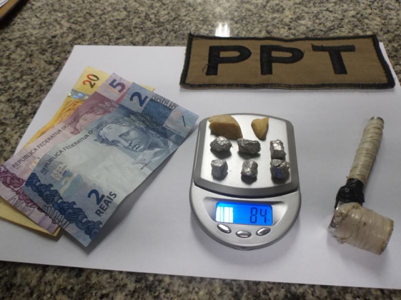 Quando da revista no início da madrugada desta sexta-feira (27), os policiais encontraram 8 pedras de crack que pesaram 8,4 gramas, um cachimbo e a quantia de R$ 27,00.