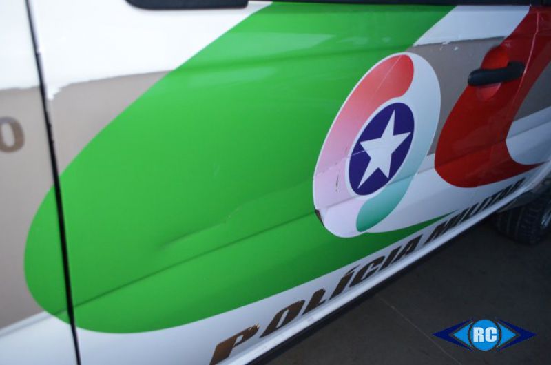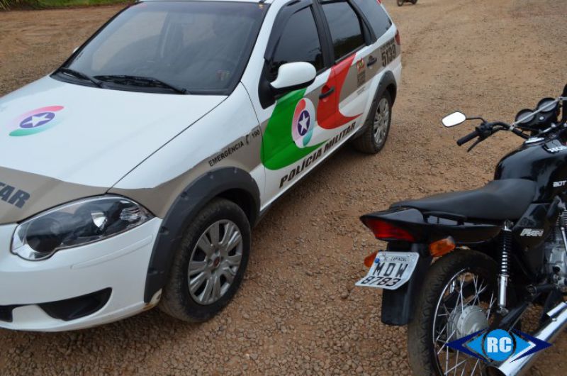 A guarnição iniciou então o acompanhamento. O motociclista seguiu pelo Acesso Cidade Alta, entrou na rua lateral ao campo do Bairro São Cristóvão e se dirigiu até a rua Cleto Toaldo, no Loteamento Parizotto. Na perseguição, o piloto atingiu a porta da viatura e continuou fugindo.