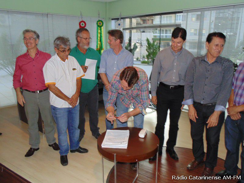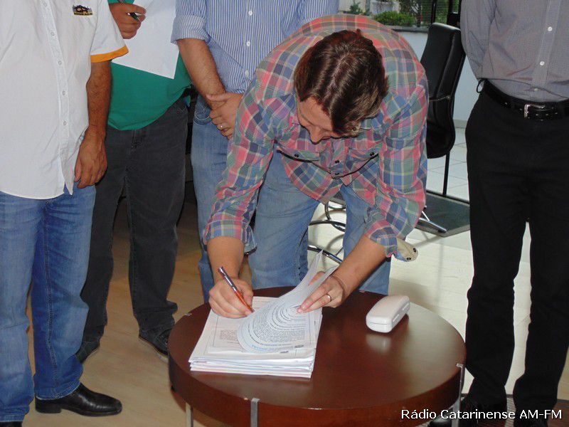 31/03/2015 Com a presença de um grande número de convidados e também de autoridades, aconteceu no final da tarde desta terça-feira (31), a assinatura e entrega da Ordem de Serviço a empresa Andrade que venceu a licitação, para a construção dos muros de gabião no Rio do Tigre em Joaçaba.