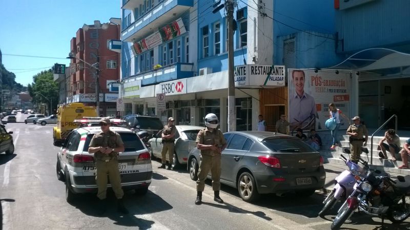 02/04/2015 Elementos em atitude suspeita provocaram uma mobilização da Polícia Militar no final da manhã desta quinta-feira (02) na avenida XV de Novembro em Joaçaba. A Central Regional de Emergência (190) recebeu ligação por volta das 11hs da empresa PROSSEGUR, responsável pelo transporte de valores para os bancos, que três elementos estavam em atitude suspeita, a princípio monitorando o caminhão que estava estacionado em frente ao HSBC. Viaturas foram acionadas, foram até o local, e verificaram a situação. Um dos elementos conseguiu fugir. Os demais foram abordados e em seguida liberados.
