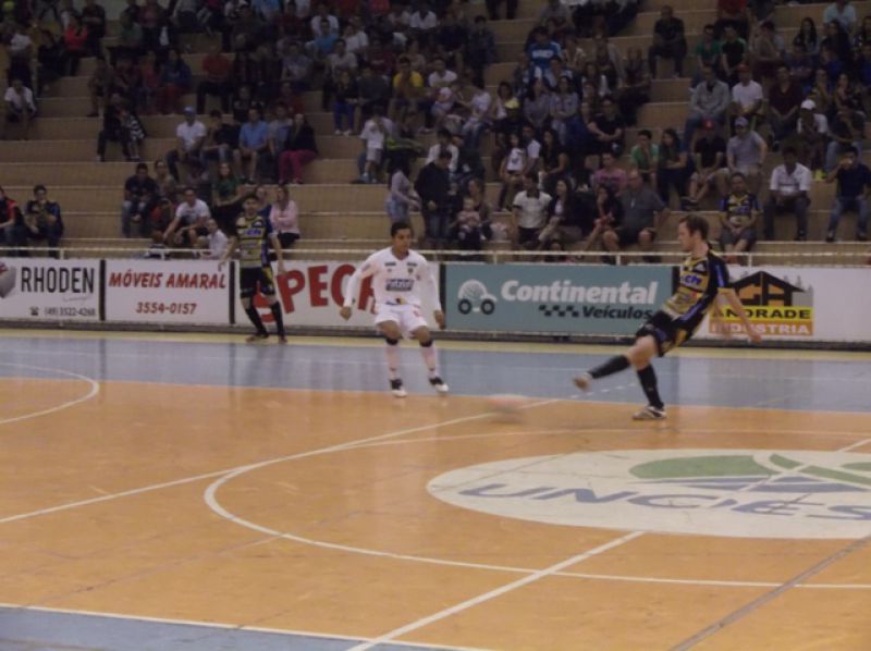 O jogo foi definido no primeiro tempo, quando em duas jogadas o Concórdia aproveitou para definir o placar em 2 a 0, com gols de Carlão e do goleiro Daividi. Tanto na primeira quanto na segunda etapa, os comandados de Cassiano criaram algumas chances, mas em nenhuma delas conseguiram converter em gol. Ao final da partida, a torcida aplaudiu os jogadores e toda a comissão técnica, pelo que foi apresentado na quadra.