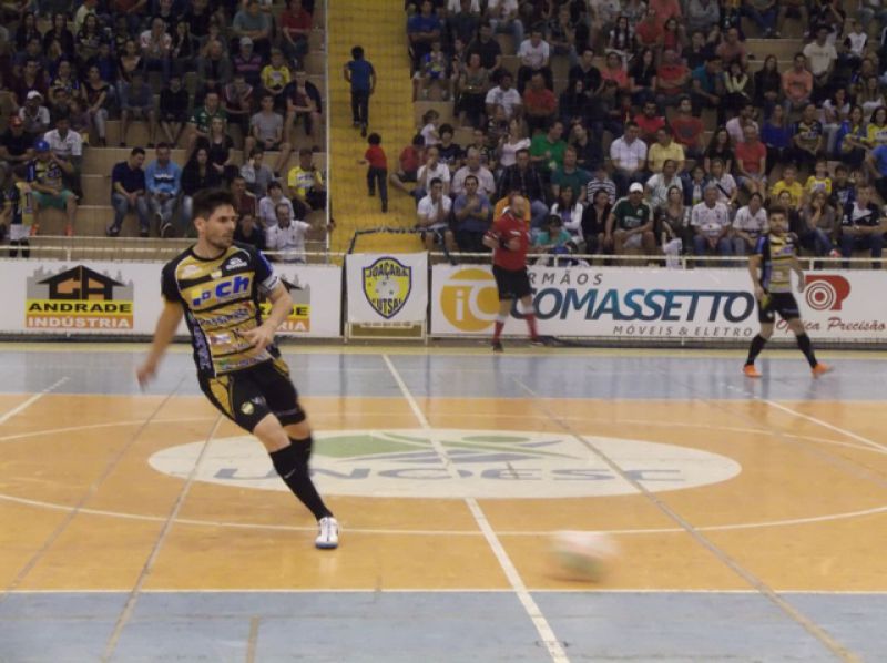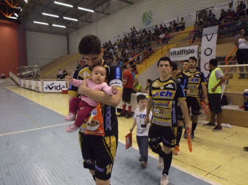 03/04/2015 No jogo de apresentação do elenco do Joaçaba Futsal para a torcida que aconteceu nesta quinta-feira (2), um grande público se fez presente nas dependências do Complexo da Unoesc, campus 1. A partida amistosa foi contra a equipe do Concórdia que disputará a Liga Nacional a partir do próximo final de semana, sendo uma das representantes do Estado nesta competição.