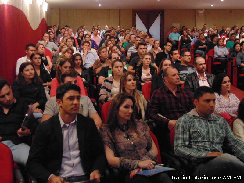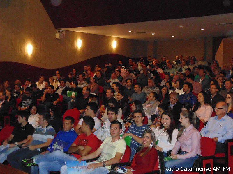 08/04/2015 Um grande público se fez presente para acompanhar na noite desta quarta-feira (8), a palestra do bacharel em Administração de Empresas pela Universidade Federal do Rio Grande do Sul (UFRGS) com especialização em gestão de pessoas, diretor-presidente da DE Consultores Associados, professor e palestrante Eduardo Tevah. O evento aconteceu nas dependências do teatro Alfredo Sigwalt em Joaçaba e o tema da palestra foi a atitude.