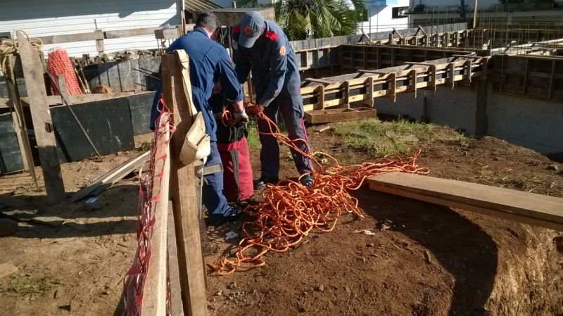 09/04/2015 Um trabalhador de 52 anos teve que ser socorrido pelo Corpo de Bombeiros após cair de uma escada num prédio em construção na rua Duque de Caxias. O homem estava se preparando para iniciar sua jornada de trabalho quando caiu de uma altura aproximada de 5 metros. A ocorrência foi registrada por volta das 08hs. A escada móvel dá acesso aos pilares do prédio em construção. Em razão do local de difícil acesso as equipes de resgate encontraram muitas dificuldades para remover a vítima. Sem possibilidade de usar maca, ela foi içada com uso de cabos. O homem, consciente e reclamando de dores, foi levado ao Hospital Universitário Santa Teresinha.