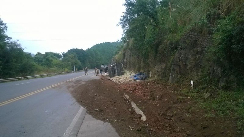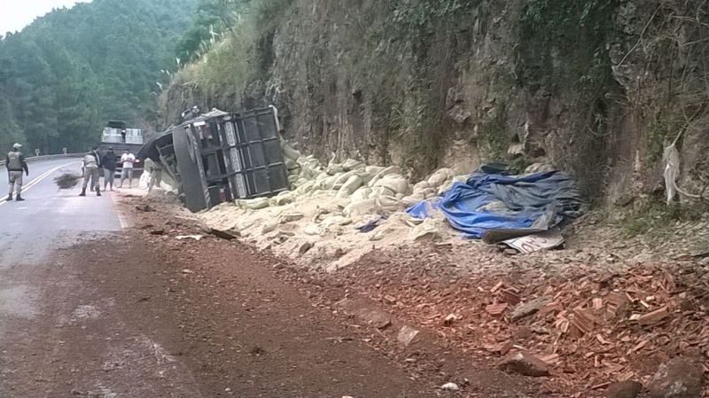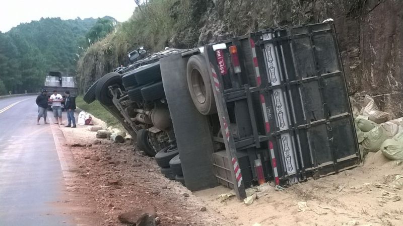 16/04/2015 Um caminhão carregado com sacos de farelo tombou na BR-282 em Herval d’Oeste no início da manhã desta quinta-feira (16). O acidente aconteceu por volta das 07h30, próximo da curva do “Passat”. O caminhão com placas de Grão Pará (SC) trafegava no sentido Erval Velho à Joaçaba. A carga de farelo ficou esparramada pelo acostamento. O motorista saiu ileso. O trânsito não chegou se interrompido, uma vez que o veículo ficou fora da pista.