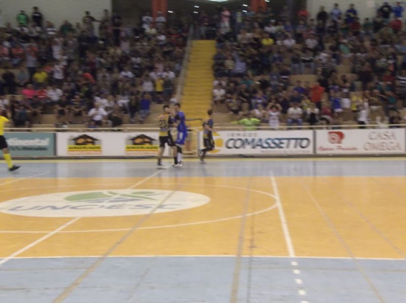 Em dois tempos completamente distintos, o Joaçaba Futsal construiu a sua vitória na segunda etapa, pois no primeiro tempo a equipe de Chapecó veio bem fechada e explorando os contra-ataques. Numa cobrança de lateral errada pelo capitão Zé Henrique, o atleta Mayco de Chapecó abriu o placar, fazendo 1 a 0. Mesmo com toda a pressão, os comandados de Cassiano Klein não conseguiram reverter o placar na primeira etapa.