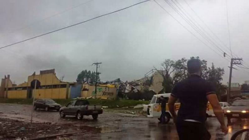 21/04/2015 Um temporal de grandes proporções atingiu a cidade de Xanxerê, município distante cerca de 40 km de Chapecó na região Oeste de Santa Catarina nesta segunda-feira. De acordo com as informações do Corpo de Bombeiros, um tornado pode ter atingido a cidade, deixando um rastro de destruição, principalmente na região onde ficam os bairros Tacca, Esportes, Bortolon, São Jorge, Colatto e Pinheiro.Por telefone, o secretário de Desenvolvimento Regional de Xanxerê, Ivan Marques, descreveu a situação como um cenário de guerra. Segundo ele, muitas casas foram destruídas, árvores arrancadas e carros arrastados. Relatos dos moradores contam que tudo foi muito rápido, não durando mais do que três minutos. Os ventos podem ter passado dos 80 km por hora. Muitos feridos estão sendo atendidos no Hospital Regional São Paulo e pelo menos duas mortes já foram confirmadas, sendo que uma ocorreu por soterramento e a outra no hospital.Segundo informou a Celesc, no início da noite diversas torres de energia foram atingidas deixando milhares de consumidores sem luz em vários municípios.