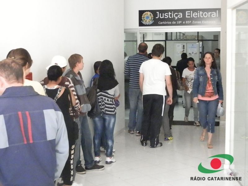 Em Joaçaba os eleitores que estiver na fila às 19h receberão uma senha garantindo o atendimento. Somente no dia de ontem 550 pessoas passaram pelos dois cartórios eleitorais do município. Hoje pela manhã filas se formaram para atendimento.