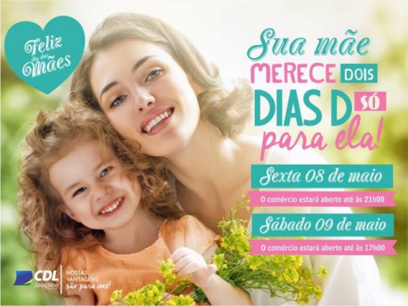 08/05/2015 O Dia das Mães, que será comemorado no próximo domingo (10), é uma das datas mais importantes no calendário de vendas do comércio. Motivados em presentear as mães os filhos e pais vão às compras movimentando os mais diversos segmentos. Em Joaçaba a Câmara dos Dirigentes Lojistas (CDL) este ano decidiu realizar dois Dias D especial alusivo ao Dia das Mães, conforme calendário aprovado em assembleia pelos associados. Nesta sexta-feira (08) as lojas ficarão abertas até às 21hs. Já no sábado (09) o atendimento será até às 17hs.