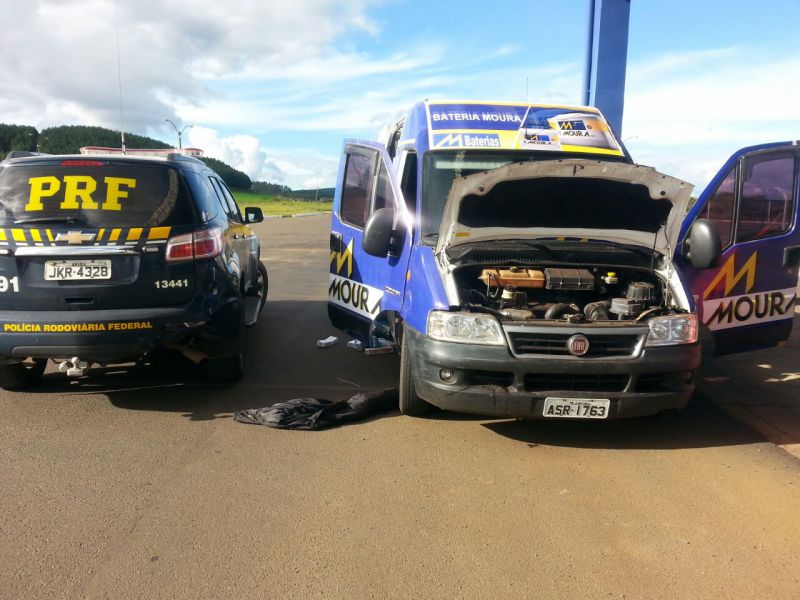 Quando da abordagem a um veículo Van que tinha registro de furto/roubo, os policiais constataram que as placas eram falsas além de encontrarem um rádio comunicador para acompanhar o trabalho da polícia. No compartimento de carga, eles encontraram uma grande quantidade de cigarros contrabandeados do Paraguai. O motorista foi preso em flagrante, sendo que a PRF também deteve o veículo Saveiro com dois ocupantes que faziam o trabalho de batedor.