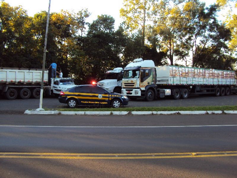 10/05/2012 Policiais rodoviários federais realizaram fiscalização de excesso de peso na BR 153, em Concórdia nesta quinta-feira (10). Os policiais multaram 14 veículos , totalizando mais de 16 toneladas de excesso de peso. O excesso de peso é uma das principais causas de deterioração das nossas rodovias. Além disso, os freios não funcionam adequadamente nestas condições. Além das filas que estes veículos causam pelo peso excedente, vários acidentes de trânsito são causados por este motivo, colocando em risco toda a sociedade. Durante a fiscalização aos caminhões, os policiais desconfiaram do comportamento de um pedestre. Ao verificarem sua documentação constataram que havia um mandado de prisão contra ele, razão pela qual ele foi preso e conduzido para a Polícia Civil de Concórdia.