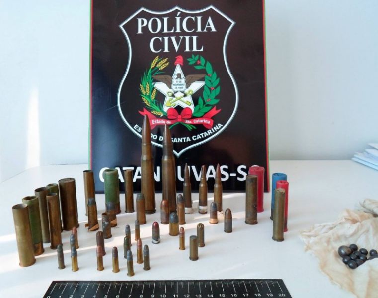 02/06/2015 Após apreender um cofre durante o cumprimento de mandado de busca e apreensão em Catanduvas, a Polícia Civil acionou um profissional da área para a abertura da porta com segredo. Confirmando as suspeitas iniciais, foram encontradas várias munições de diversos calibres, algumas de uso exclusivo das forças armadas, como o 50 BMG, e munições restritas, sendo elas 7.62 mm, .45 ACP, .44 Magnum.