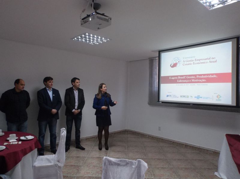 03/06/2015 Foi lançado na manhã desta quarta-feira (03) em Joaçaba o 2º Seminário de Gestão Empresarial no Cenário Econômico Atual. O evento será realizado no dia 18 de junho no teatro Alfredo Sigwalt e está sendo promovido pela CDL, ACIOC e Sebrae com apoio da ACIRP. O Seminário vai reunir dois palestrantes de renome nacional. Roberto Zardo vai ministrar palestra com o tema “Em tempos de crie, como fortalecer as organizações”. Já o palestrante Gil Giardelli terá como tema “Inovação Radical e a Era dos Valores”. As palestras começam as 19hs e encerram com um talk show. “São duas palestras, focando a questão do cenário, a excelência, a inovação, valores para que haja um crescimento das empresas e finalizando com o talk show que vai dar oportunidade de debater com os palestrantes” explicou Suelí Bernárdi, agente de articulação do SEBRAE.