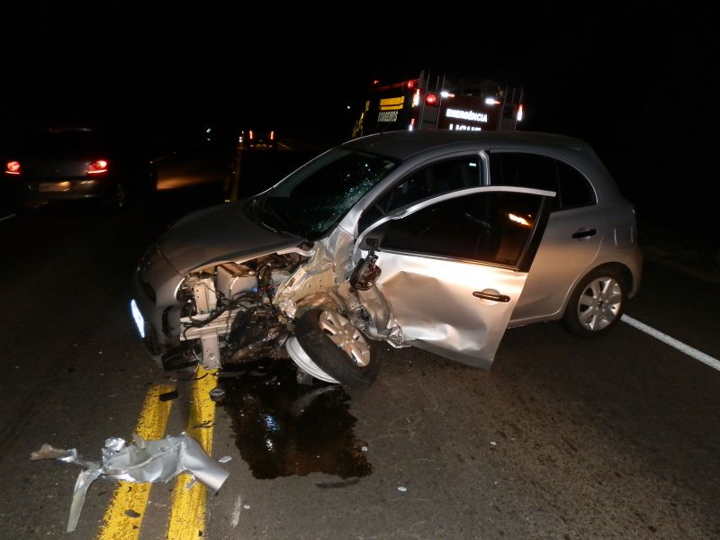 A motorista do March contou que se numa reta se deparou com um caminhão seguindo à sua frente com os faróis apagados. No intuito de evitar uma batida na traseira do caminhão, ela tirou o carro para a pista contrária, vindo a bater de frente com a camionete. O veículo foi comprado há dois meses.